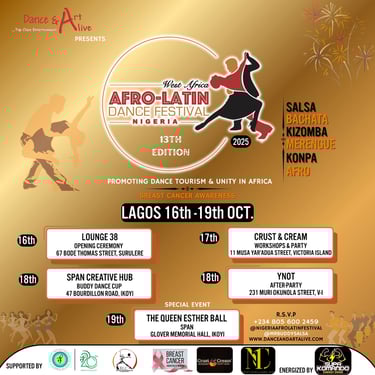Join us in Nigeria for an exciting Afro-Latin dance festival featuring competitions and activities promoting partner dancing and breast cancer awareness.